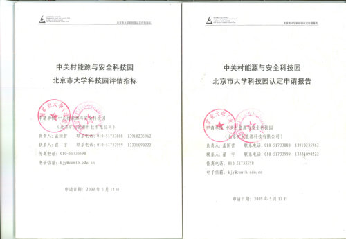 12月28日,根据京科发[2009]627号文件及专家评审意见,北京市科学技术委员会、北京市教育委员会和中关村科技园区管委会研究决定,包括“中关村能源与安全科技园”在内的七所高校科技园被认定为北京市大学科技园。