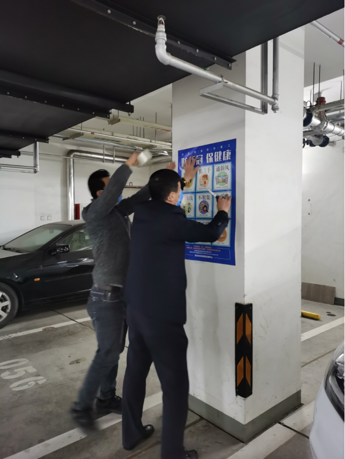 防疫工作组粘贴展示防疫海报确保宣传到位
