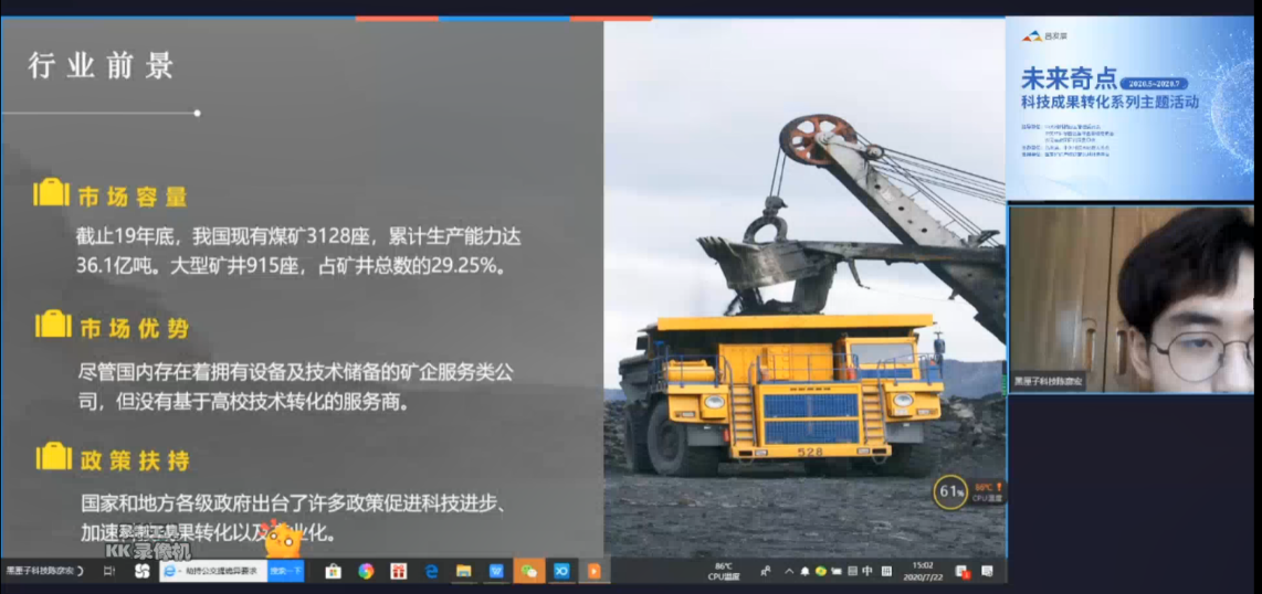 此次活动,园区主要推介拥有自主知识产权或专利的雷达探地与数据分析、黑匣子科技、废矿求生、煤矿顶板灾害智能预警系统、新型矿山“智慧水泥”等新一代信息技术、智能制造领域项目,5个项目全部依托我校科研团队、学院、研究中心等学校资源,由我校在校大学生创业团队承担技术成果的市场化运作。在线上路演过程中,各个项目均受到多方关注与认可。