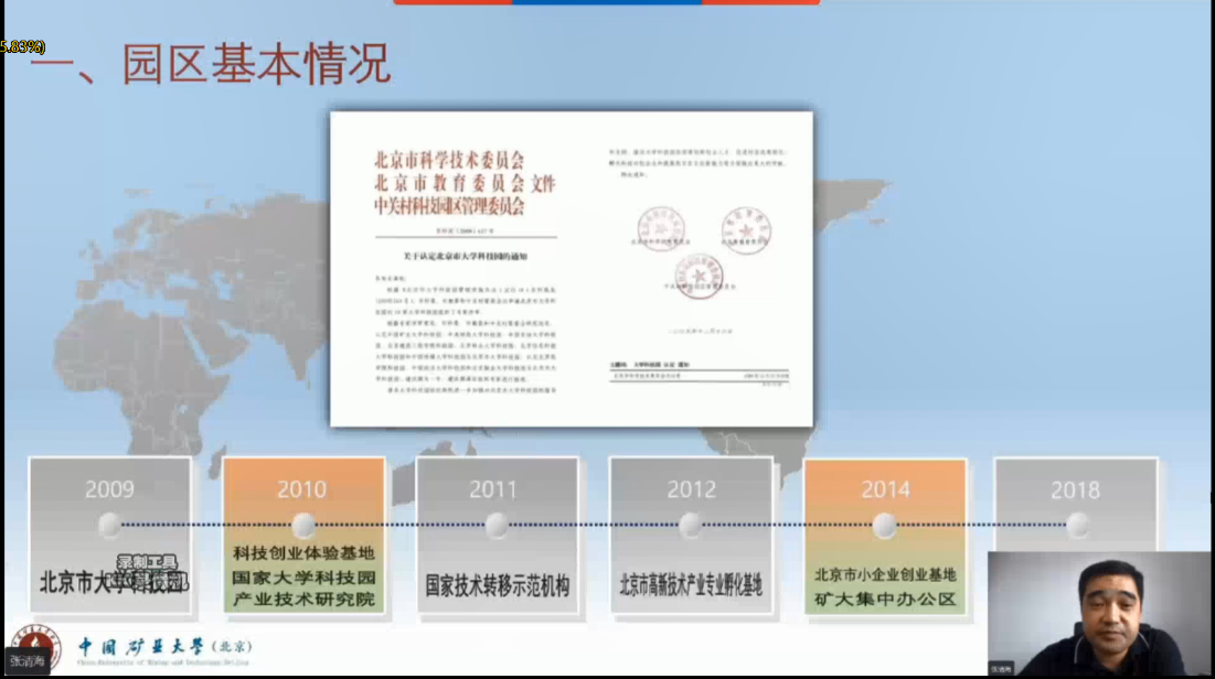 中国矿业大学(北京)国家大学科技园,是中关村科技园区管理委员会认定的第一批中关村技术转移服务平台。为促进我校科技成果转化落地,实现产学研用一体化合作,园区在中关村管委会、中关村昌平园管委会、沙河高教园管委会指导下,联合中关村技术经理人协会、北京昌平科技园发展有限公司等单位,于2020年7月22日成功举办中关村“火花”活动——“未来奇点”第六场科技成果转化项目线上路演。来自投资机构、高校院所、行业企业等各界人士及社会公众多达4.6万人次在线观摩,并参与交流互动。