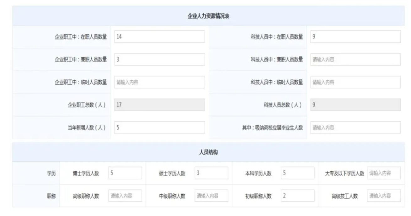 4、填写评测数据:包括2020年企业财务数据(图4)、科技人员(20分,图5)、研发投入(50分,图6)、知识产权(30分,图7):