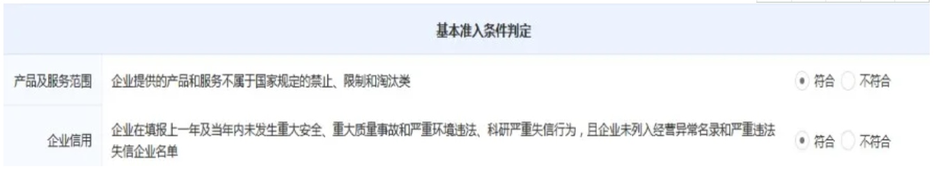 2、填写重要条件判定:企业拥有有效期内高新技术企业资格证书、企业拥有经认定的省部级以上研发机构、企业近五年内获得过国家级科技奖励,并在获奖单位中排在前三名、企业近五年内主导制定过国际标准、国家标准或行业标准。起草单位中排前五名。