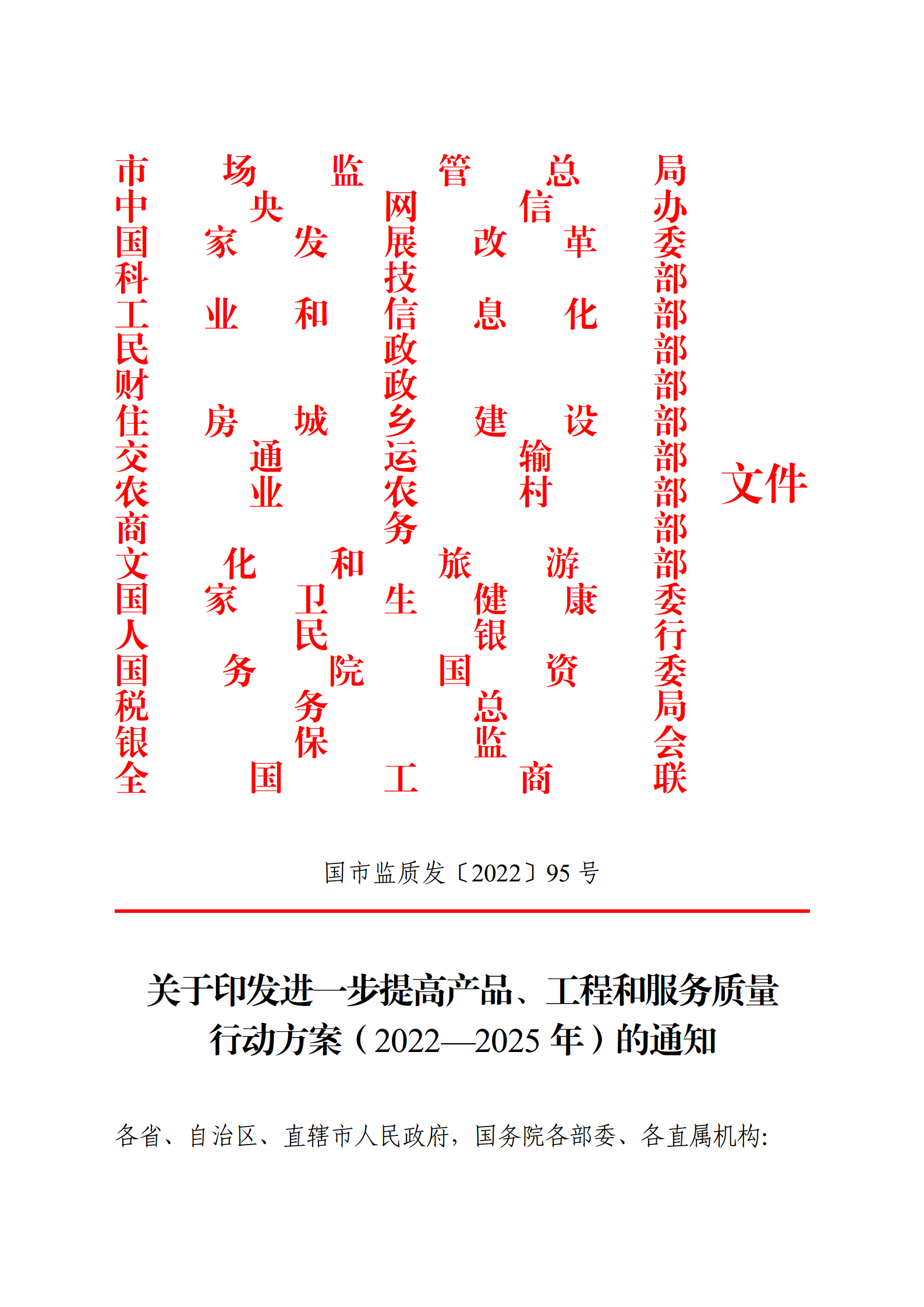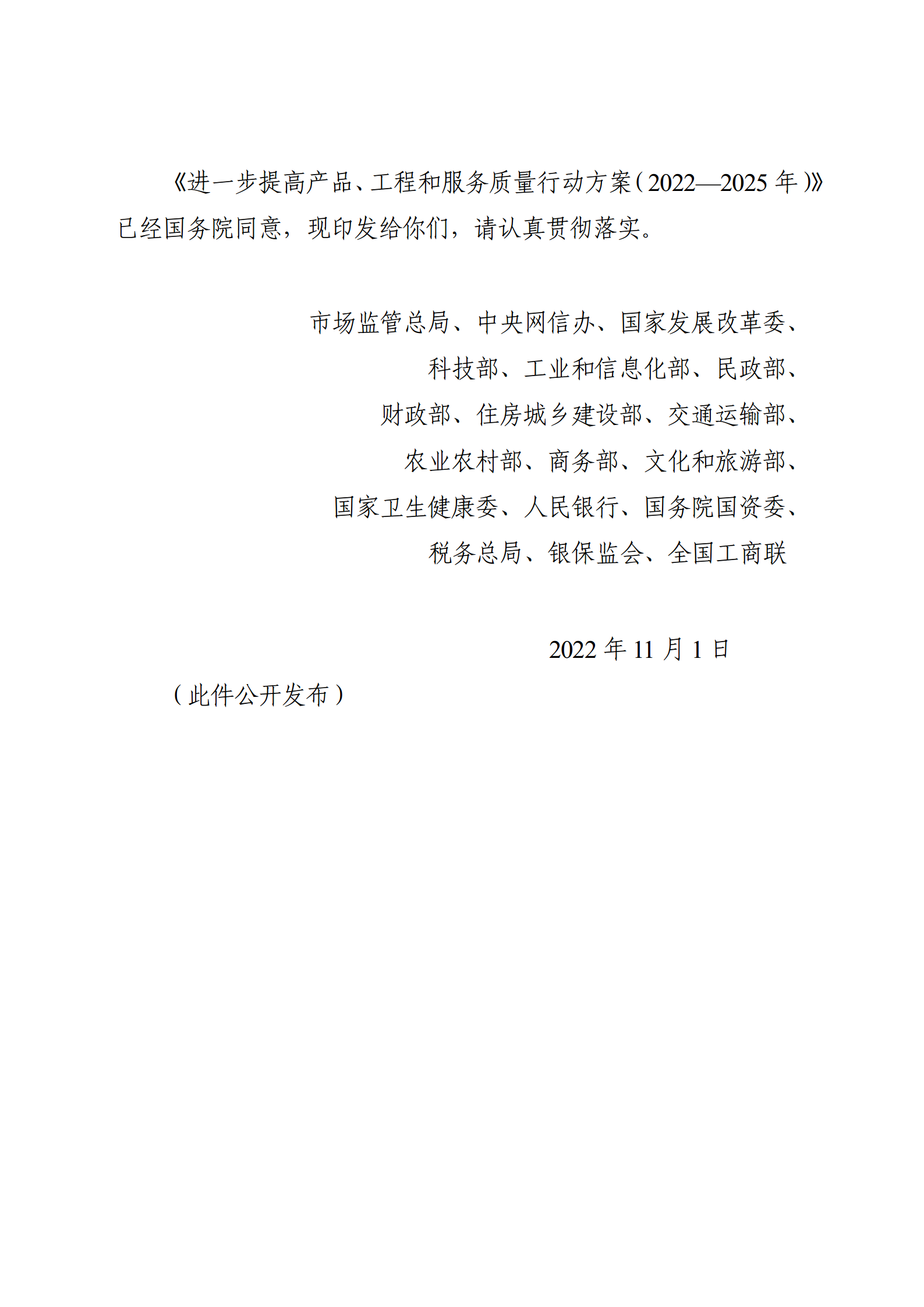进一步提高产品、工程和服务质量行动方案(2022—2025年)